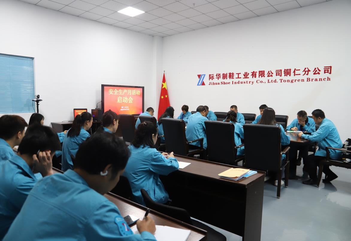 会上,首先传达学习了《习近平总书记关于安全生产的重要论述摘编》,国务院安委会办公室 应急管理部《关于开展2024年全国“安全生产月”活动的通知》,制鞋公司(际华黔胶产【2024】77号)《关于开展2024年安全生产月活动的通知》等文件精神。随后,铜仁分公司根据《关于开展2024年“安全生产月”活动安排的通知》,明确了2024年“安全生产月”的核心任务,并部署了2024“安全生产月”活动安排。